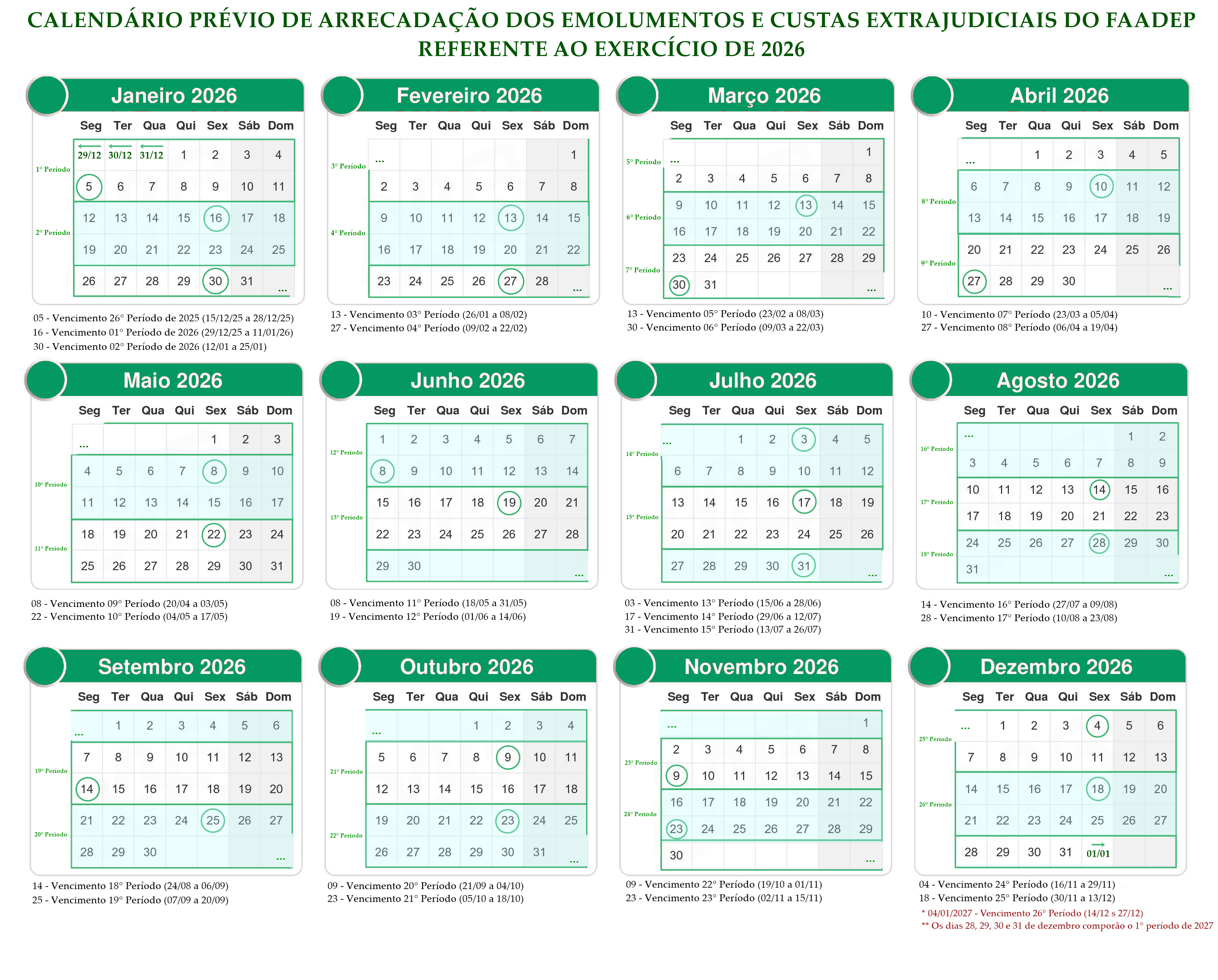 CALENDÁRIO PRÉVIO DE ARRECADAÇÃO